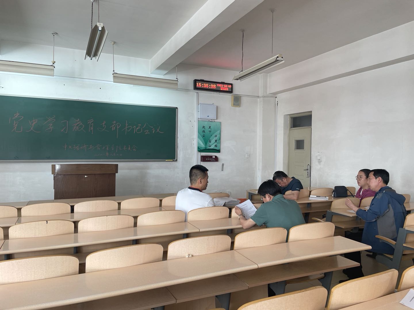 2021年6月3日,今年会jinnian官网党委书记王玉泉在春晖学堂E204组织召开党史学习教育支部书记会议。学院在校的各支部书记参加了此次会议。王书记一一了解了各支部的学习进度和接下来的学习安排,组织委员刘希裕传达了学院党史学习教育督查的情况。会议要求各支部确保学习进度,严格按照学校和督导组的要求高标准、高质量的推进党史学习教育。