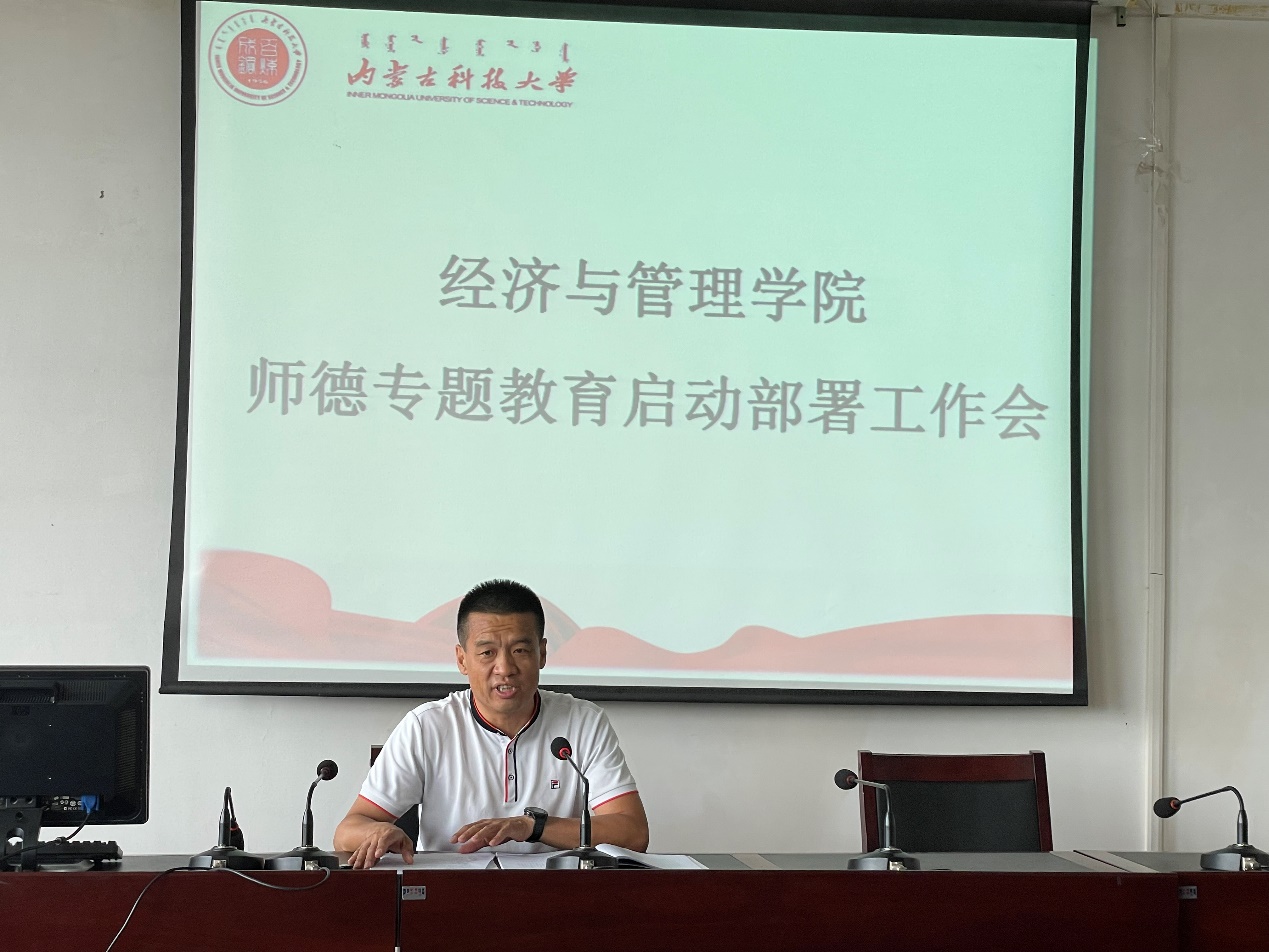2021年6月28日上午,今年会jinnian官网党委在腾飞楼A413召开师德专题教育启动部署工作会。党委书记王玉泉主持会议并讲话,学院在校教职工参加了此次会议。学院严格落实《内蒙古自治区教育厅关于在全区教育系统开展师德专题教育的通知》(内教教师函[2021]44号)通知精神,在全院范围内开展师德专题教育。