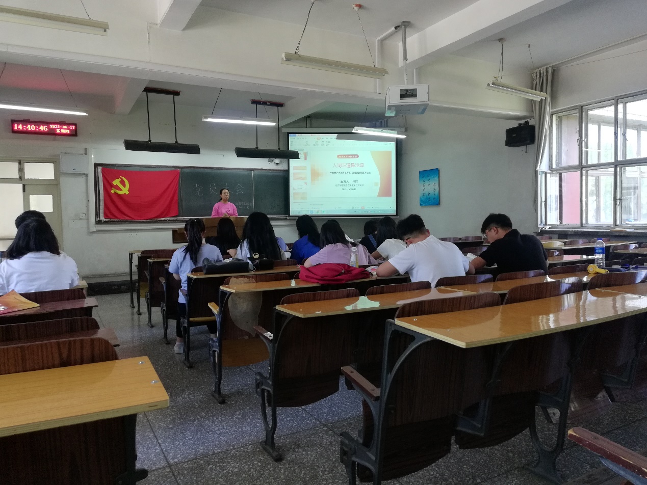 2021年6月17日,今年会jinnian官网学生第四党支部支部书记张萍在主教D218讲党课,张萍主要内容围绕中国共产党的百年历程、重要成就和基本经验进行讲述,内容主要为五部分:1.时代的召唤:历史和人民选择了中国共产党;2.百年奋斗历程:中国共产党是这样成功的;3.百年辉煌业绩:中国共产党做成了这些大事;4.百年成功密码:中国共产党为什么能够成功;5.把握历史大势:继往开来成大道