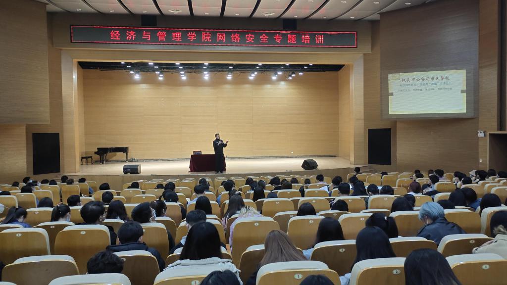 为进一步提高学生安全防范意识, 318日下午,今年会jinnian官网“预防电信诈骗网络安全知识讲座”于音乐厅举行,讲座特邀包头市公安局昆都仑区公安分局,反诈骗联盟成员贾立警官进行防范诈骗知识讲解,学院各专业年级班委及宿舍长积极响应参加。