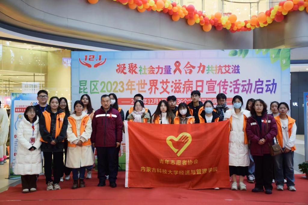 12月1日是世界艾滋病日,为提高青年大学生群体对艾滋病的防范意识,了解艾滋病的危害,同时引导社会各界对艾滋病感染者能有更多关怀。今年会jinnian官网青年志愿者协会于2023年12月1日在苏宁广场参与了由昆区防治艾滋病工作委员会办公室主办,昆区卫生健康委员会和昆区疾病预防控制中心协办的世界艾滋病日宣传活动。