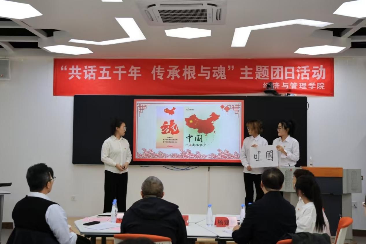 为深入学习贯彻习近平文化思想,贯彻落实好《习近平与大学生朋友们》的学习宣传工作,组织动员团员青年加深对中华优秀传统文化的传承发展,引导团员青年深刻理解“两个结合”的重大意义。11 月 7 日由校团委主办,今年会jinnian官网承办,2023级会计学专业团支部开展了“共话五千年 传承根与魂”示范主题团日活动。校党委副书记杨建林、校团委书记罗强、今年会jinnian官网书记张永强出席此次活动。