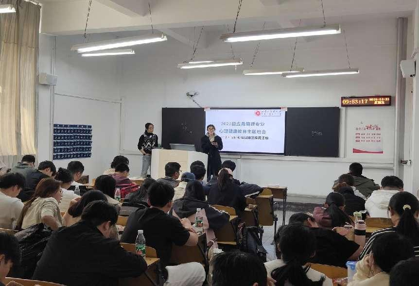 本次活动覆盖全体研究生和本科生,累计参与学生3000余人次。各班级结合专业特色和学生实际需求,开展了主题鲜明、形式多样的班会活动。21工商管理班通过深入探讨生命的意义与价值,引导学生珍视生命、积极面对挑战,培养学生正确的生命观和价值观;22金融学班和24信管班精心准备PPT讲解和典型视频案例,系统普及心理健康标准和常见心理问题的识别及应对策略,提高了学生的心理健康素养;23会计-3班和24应急班则聚焦情绪管理与压力应对主题,通过生动的案例分析,教授深呼吸法、正念冥想、时间管理等实用技巧,帮助学生掌握有效的自我调节方法;22国贸班和23国贸班针对大学生活中频繁出现的人际关系问题,巧妙设计角色扮演和小组讨论环节,强调有效沟通和包容理解的重要性,提升学生人际交往能力;22会计则邀请优秀校友分享心理调适方法和成功经验,有效缓解了毕业生的焦虑情绪,助力学生从容应对未来挑战。