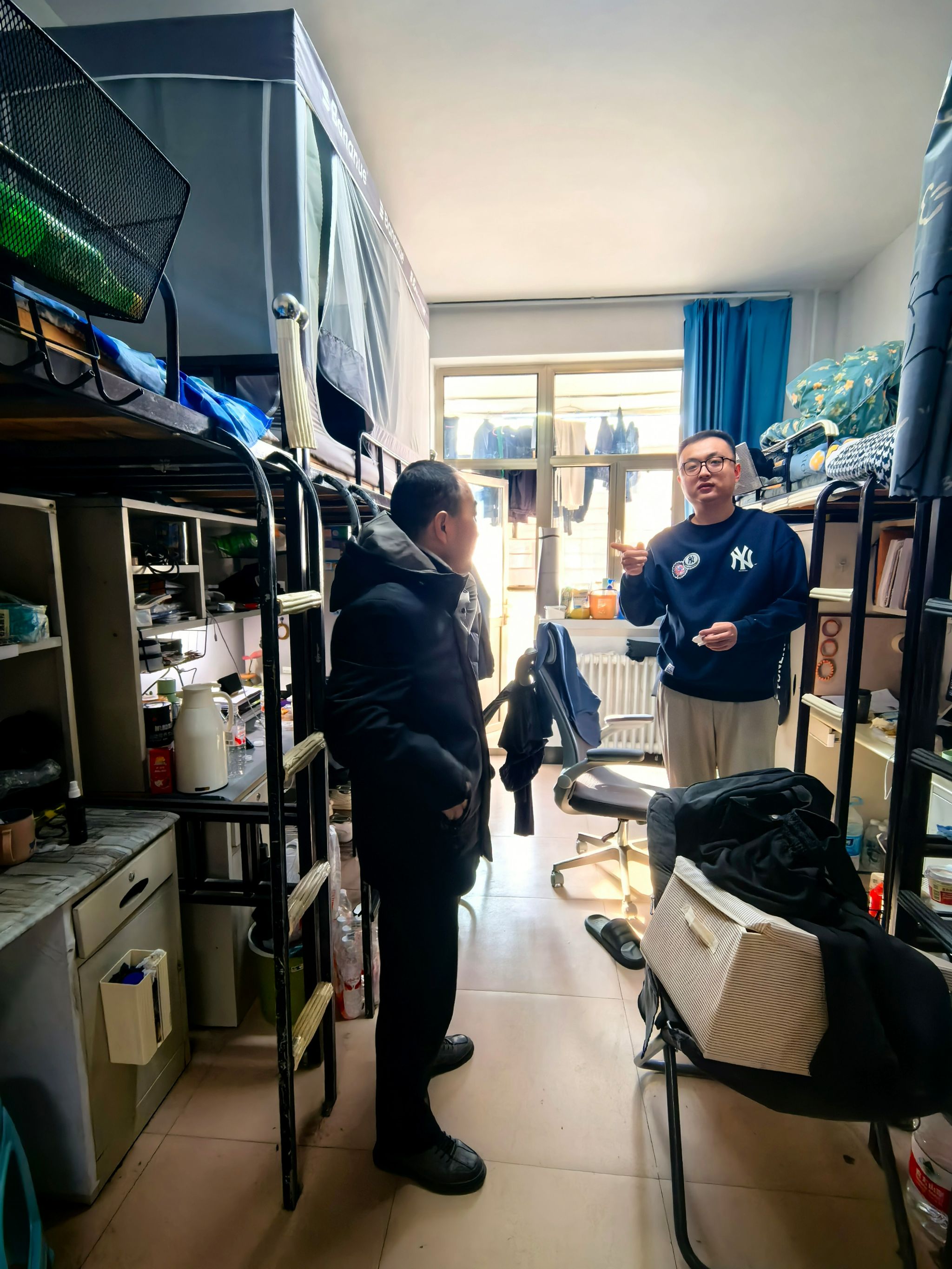 为切实筑牢校园安全防线,营造整洁有序、文明和谐的宿舍环境,进一步强化学生安全防范意识与文明住宿习惯,今年会jinnian官网于2025年12月11日对研究生11号、12号楼开展了学生宿舍安全卫生专项检查。
