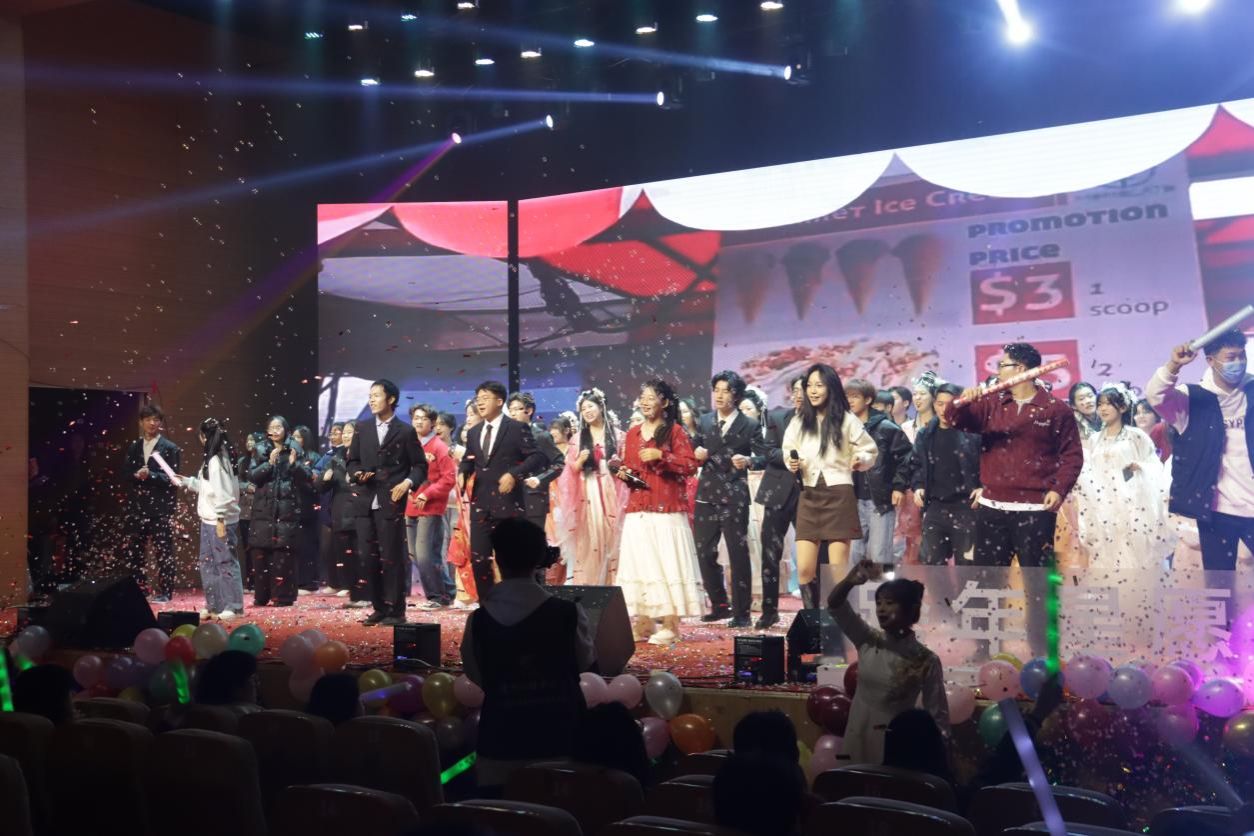 高千惠、田丰悦等人借舞蹈《What is love》用灵动舞姿传递温暖与美好;学院各组织的联欢舞蹈别出心裁,创意十足的编排展现出学生组织的凝聚力与向心力;神骏乐团倾情演绎《吉祥》,悠扬旋律中满含真挚的新年祝愿;最后,全院齐声高歌《相亲相爱》,在激昂旋律中凝聚成万马同驰、同心向前的美好和声。