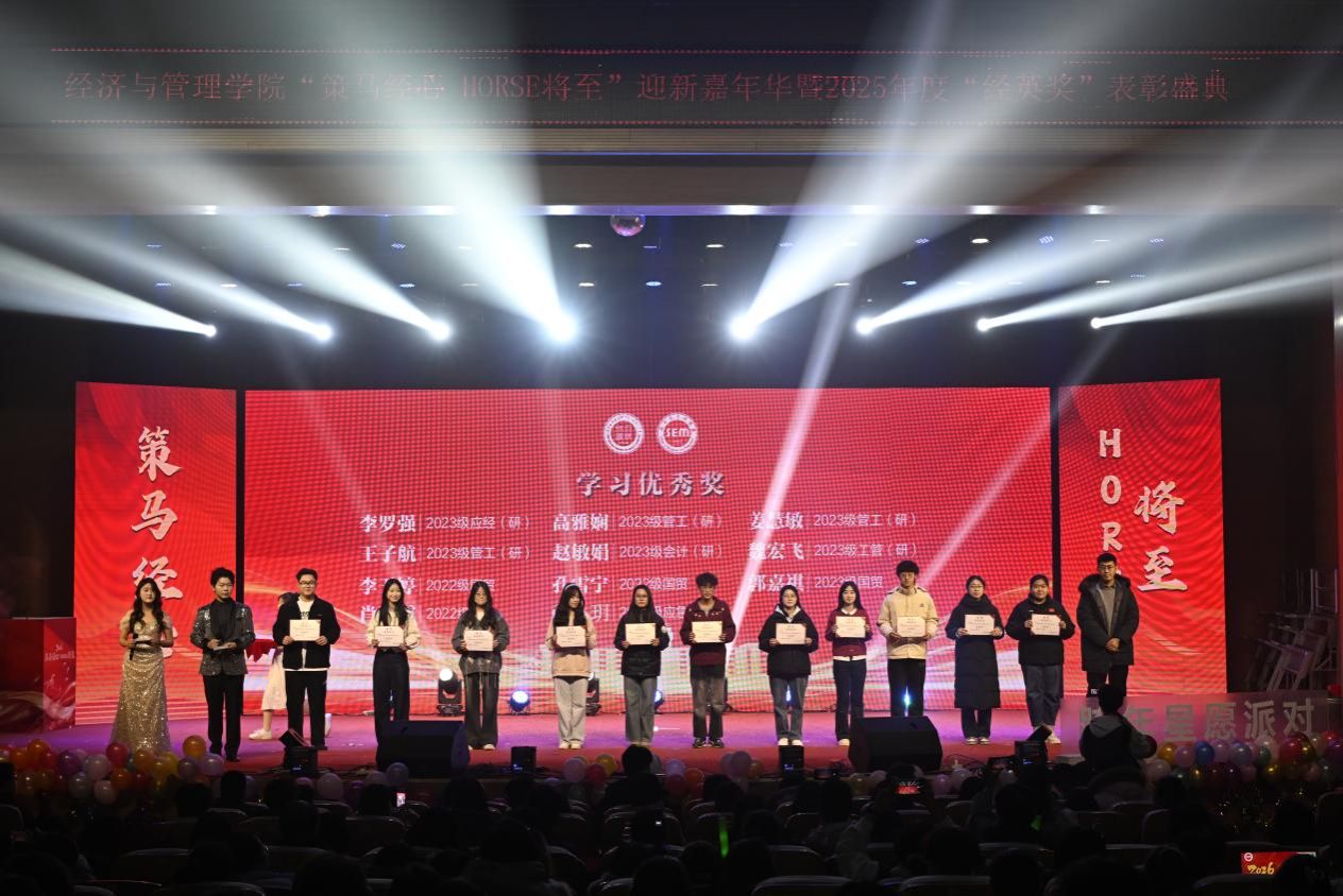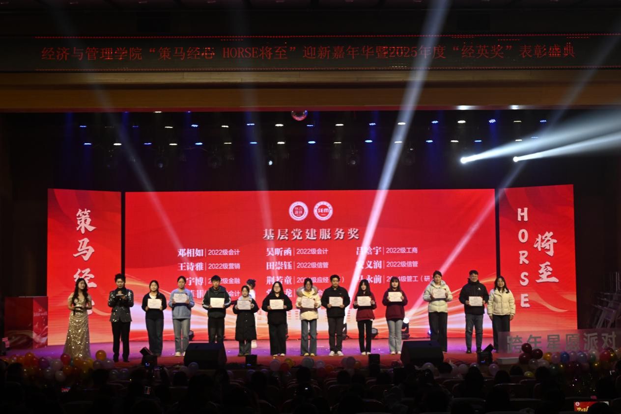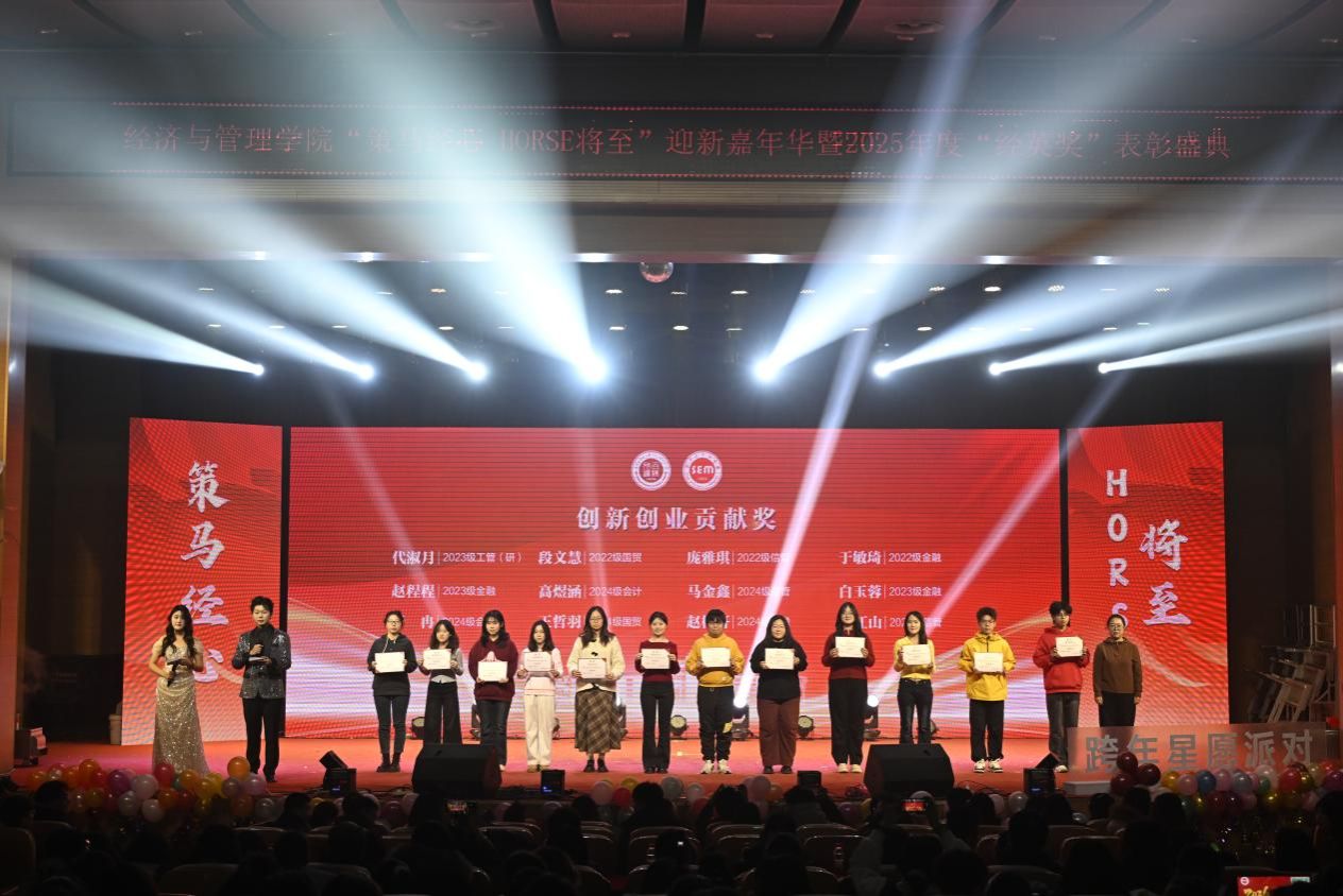 骏马踏歌辞旧岁,经管聚力启新章。2025 年 12 月 28 日,今年会jinnian官网 “策马经心,HORSE 将至” 迎新嘉年华暨 2025 年度 “经英奖” 表彰盛典在学校音乐厅璀璨启幕。全院师生齐聚一堂,共赴这场融合青春活力、荣誉表彰与新年期许的年度盛会,在欢声笑语中定格美好时光,在逐梦征程上凝聚奋进力量。