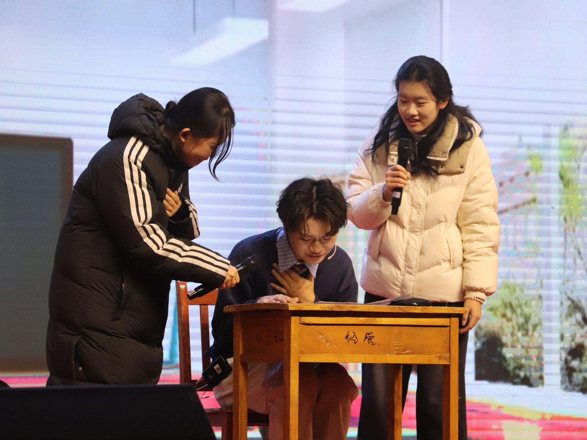 董天一、王法、吴子炎的相声《对对对》妙语连珠、包袱不断,点燃满堂欢笑;腾飞艺术团鹿鸣乐队奏响《两个恰恰好》,尽显青春活力;学院礼仪队《十二花神》翩跹而至,尽显传统风韵与现代气质的碰撞融合;康慧雯、郑媛媛等人以舞蹈《Strategy》舞动智慧节奏;范禹佳、王琳浩等演绎小品《考试最后十五分钟》,真实复刻校园时光,引发全场师生强烈共鸣;李昊洋、王穆子希等人则以《人来疯》将青春的炽热与张扬展现得淋漓尽致。