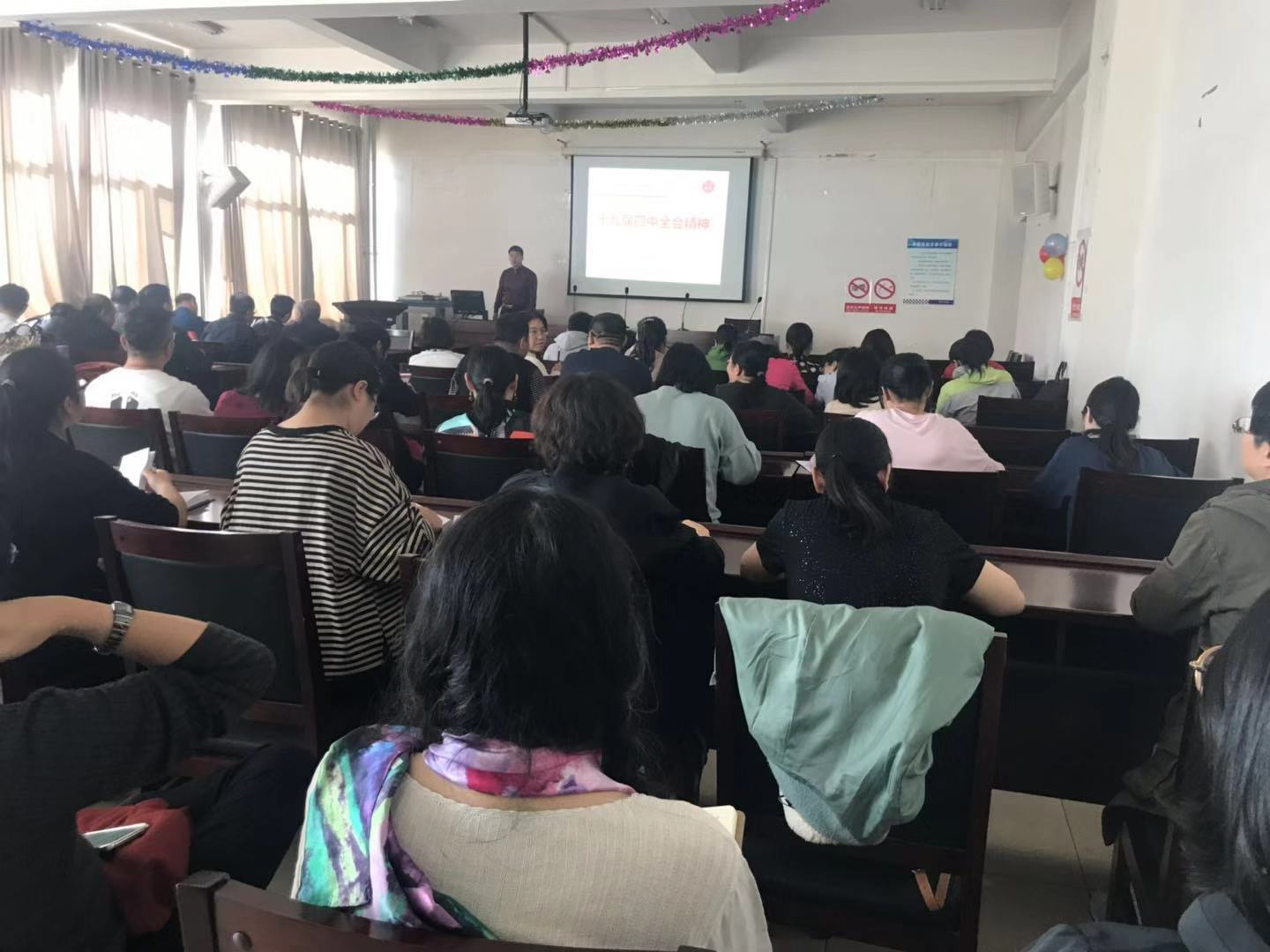 今年会jinnian官网组织全体教职工学习十九届四中全会精神