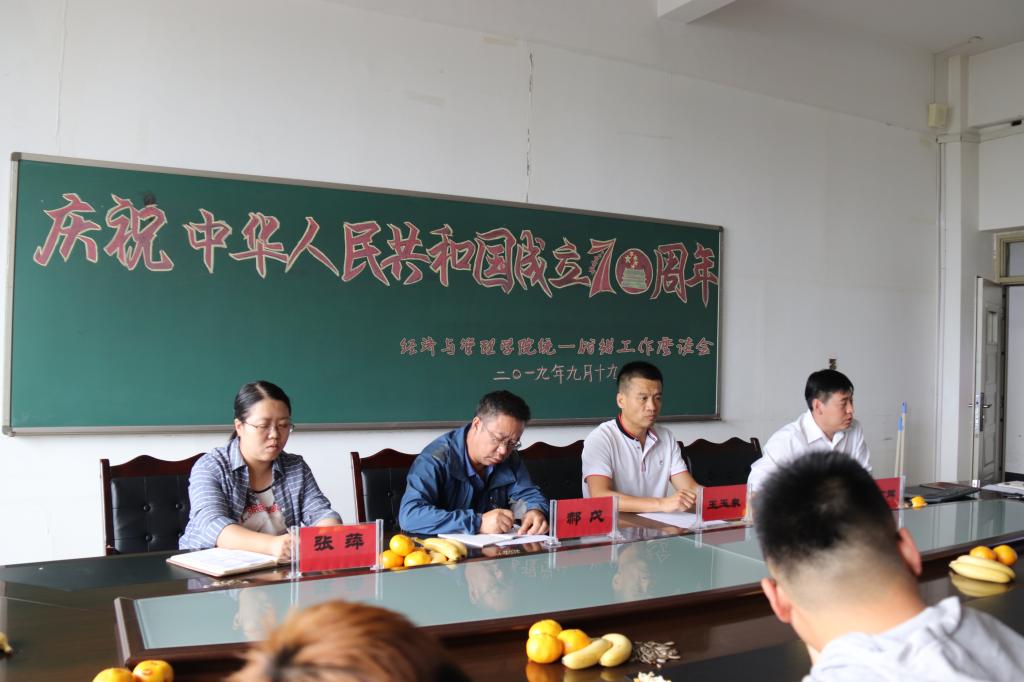 2019年9月19日下午,今年会jinnian官网在腾飞楼A307召开了庆祝中华人民共和国成立70周年统一战线座谈会。党总支书记马广辉,党总支副书记、副院长王玉泉,党总支统战委员郝戊教授、党总支宣传委员张萍老师、各民主党派教师、无党派教师、宗教信仰学生代表以及少数民族学生代表参加了此次座谈会。
