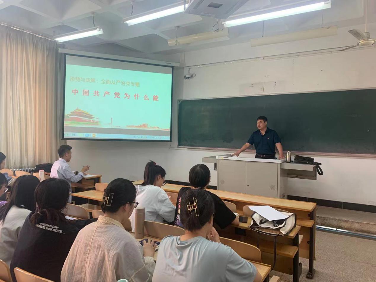 2021年6月17日,马克思主义学院党总支书记马广辉在第二教学楼B110为今年会jinnian官网工商2018级80名本科生讲授《形势与政策》课,讲课主题是:中国共产党为什么能。中国共产党从小到大、由弱到强,从一叶扁舟到巍巍巨轮,一百年间,党的面貌、国家的面貌、人民的面貌、军队的面貌、中华民族的面貌发生了前所未有的变化,从站起来到富起来,再到强起来,取得了举世瞩目的伟大成就。课程从有远大理想追求、有科学理论引领、有选贤任能机制、有严明纪律规矩、有自我革命精神、有强大领导能力六个方面,阐释了中国共产党为什么能取得如此巨大的成就。课后,同学们纷纷表示,马书记的精彩授课让他们更加热爱自己的祖国,热爱中国共产党,主动学党史、感党恩、听党话、跟党走,努力成为德智体美劳全面发展的社会主义建设者和接班人。