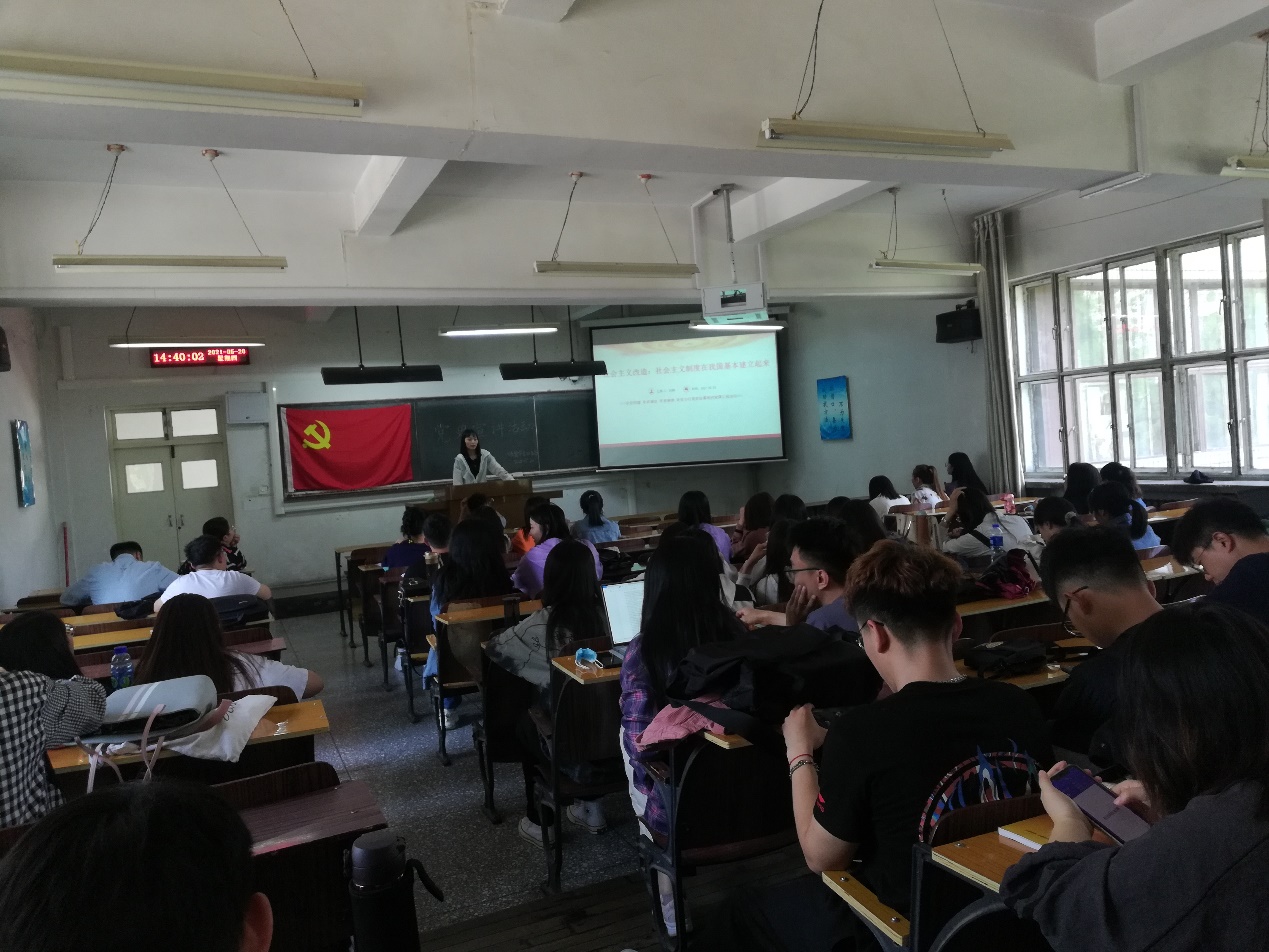 2021年5月20日今年会jinnian官网学生第四党支部开展党史宣讲活动,由马志琴、刘淼、高爽、宋月强、封思洁、张珍珍、刘朝晖,分别就掀起土地革命的风暴、中华人民共和国成立和社会主义制度的建立、社会主义建设的探索和曲折发展、伟大历史转折和中国特色社会主义的开创、把中国特色社会主义全面推向21世纪、在新形势下坚持和发展中国特色社会主义以及中国特色社会主义进入新时代等主题进行宣讲。