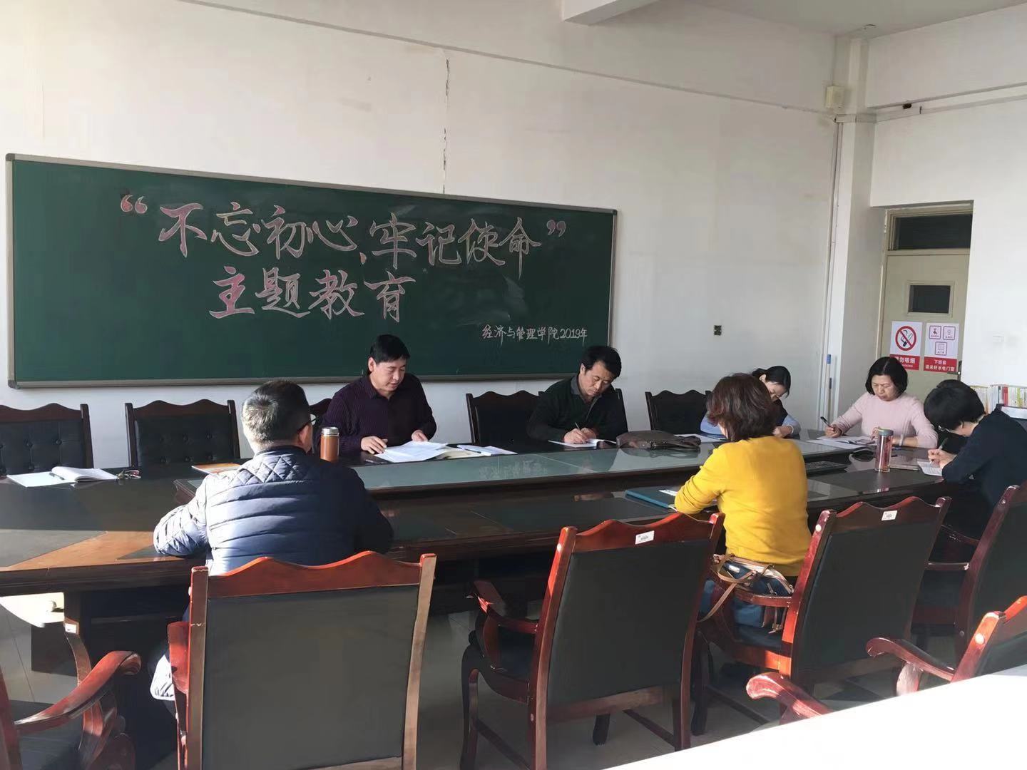为了更好地召开“不忘初心、牢记使命”专题民主生活会,今年会jinnian官网党总支于2019125日下午,在腾飞楼A307组织中心组专题学习,学院党政教领导班子成员参加了专题学习。会议学习了《中共今年会jinnian官网委员会关于开好处级领导干部“不忘初心、牢记使命”专题民主生活会的通知》、《今年会jinnian官网“不忘初心、牢记使命”专题民主生活会工作方案》、《中共中央关于坚持和完善中国特色社会主义制度 推进国家治理体系和治理能力现代化若干重大问题的决定》、党的十九大以来查处违纪违法党员干部案件警示录——滋生在象牙塔里的腐败等内容。会议还对开展谈心谈话、梳理检视问题、撰写检视剖析材料提出了具体要求。