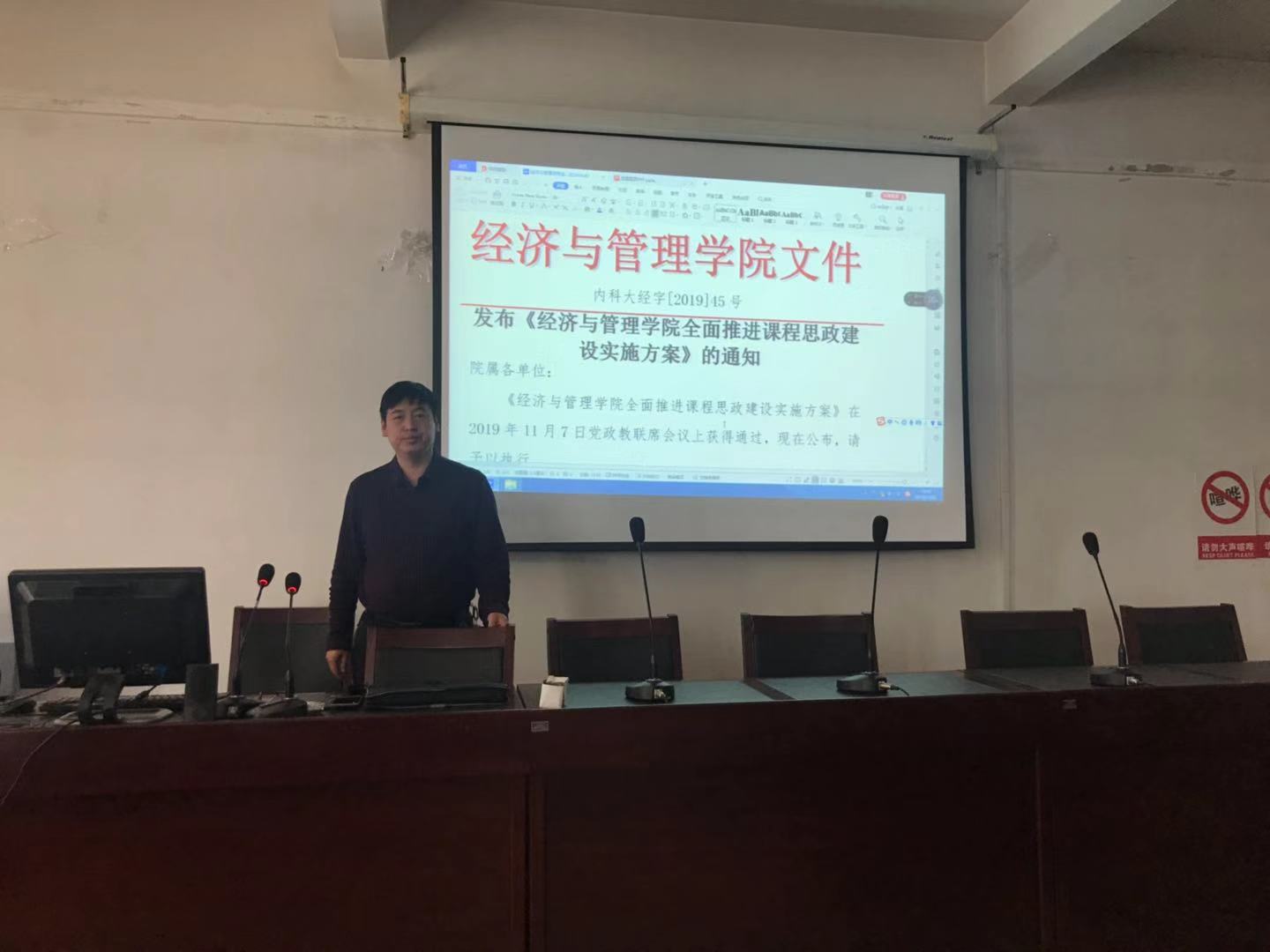 2019年11月21日下午,今年会jinnian官网党总支组织全院教职工在腾飞楼A413政治理论学习,会议学习了《今年会jinnian官网全面推进课程思政建设实施方案》。