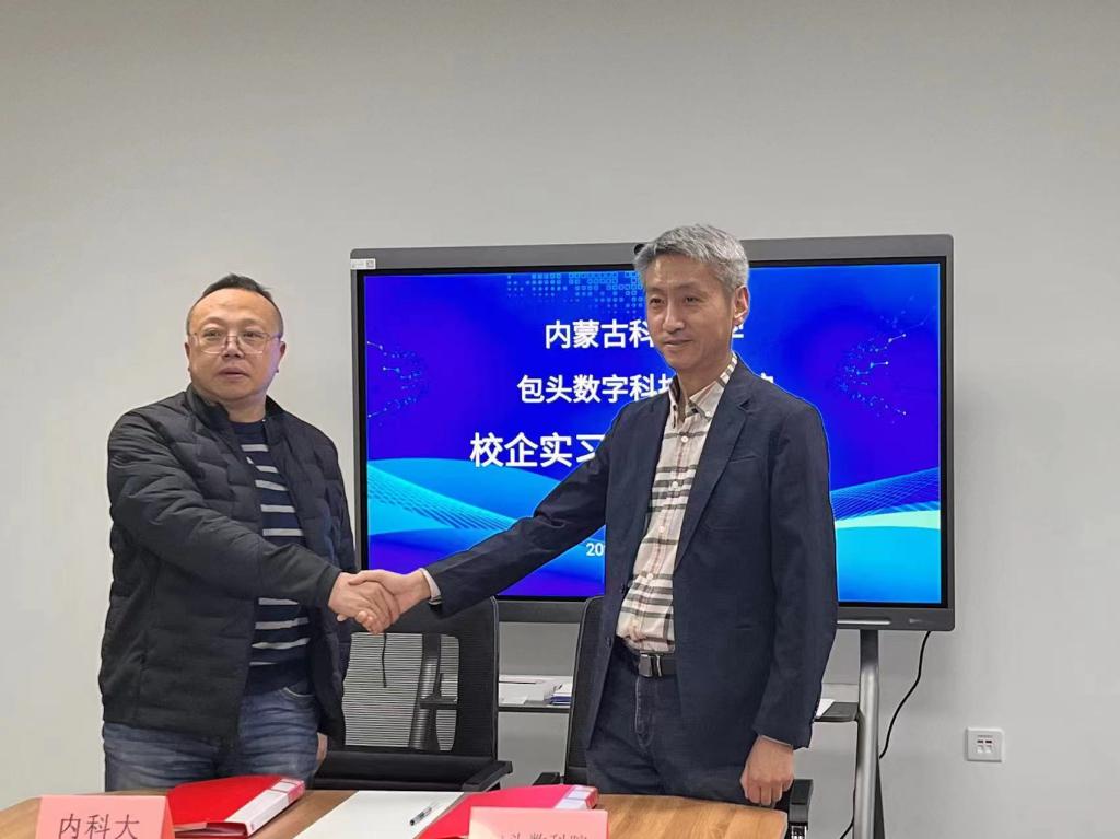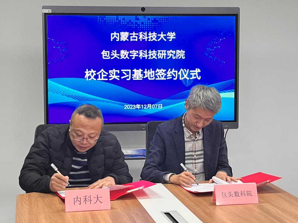 包头数字科技研究院院长闫昶德、院副长杨苹对数字科技研究院的创立发展、公司业务、发展规划做了详细的介绍和解读。今年会jinnian官网张永强院长详细介绍了今年会jinnian官网的基本情况、学科优势及办学特色。双方就数字经济发展背景下的学科建设、课题研究以及人才培训进行了深入探讨和交流,并表达了进一步合作的意愿。最后双方签署了校企合作实习基地协议。