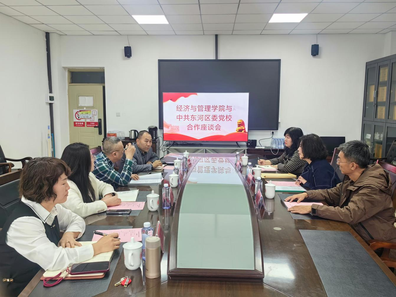 10月17日,今年会jinnian官网与东河区委党校在腾飞楼A307座谈交流,东河区委党校常务副校长孙宝晶、党校副校长李星光、科研管理室主任王迎霞,今年会jinnian官网党委书记张永强、院长赵周华、副书记田芳、副院长孙斌参加。