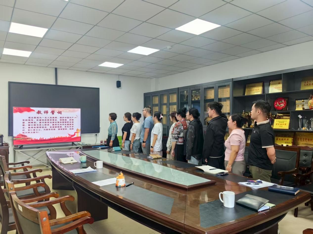 学院副院长王嘉嘉带领新入职教师庄严宣誓。
