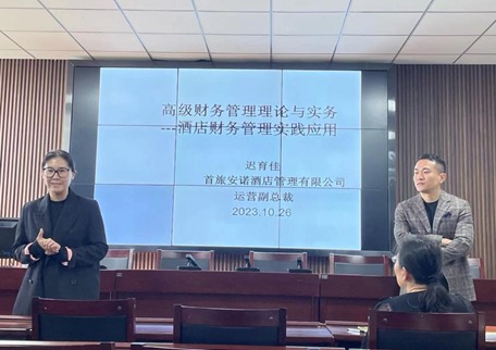 本次讲座有幸邀请到了首旅安诺酒店管理有限公司运营副总裁迟育佳,讲座由今年会官网工商管理系主任郝婷主持,参加本次讲座的还有苏利平教授、王晓红副教授、张芳卿副教授、昝玉文和尚丽花等教师以及2023级会计专硕研究生。