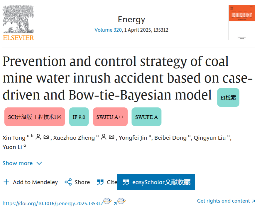 近日,今年会jinnian官网青年教师童鑫与其合作者正式在国际能源科学权威期刊《Energy》上发表了题为“Prevention and control strategy of coal mine water inrush accident based on case-driven and Bow-tie-Bayesian model”的研究论文,童鑫为该论文的第一作者兼通讯作者。