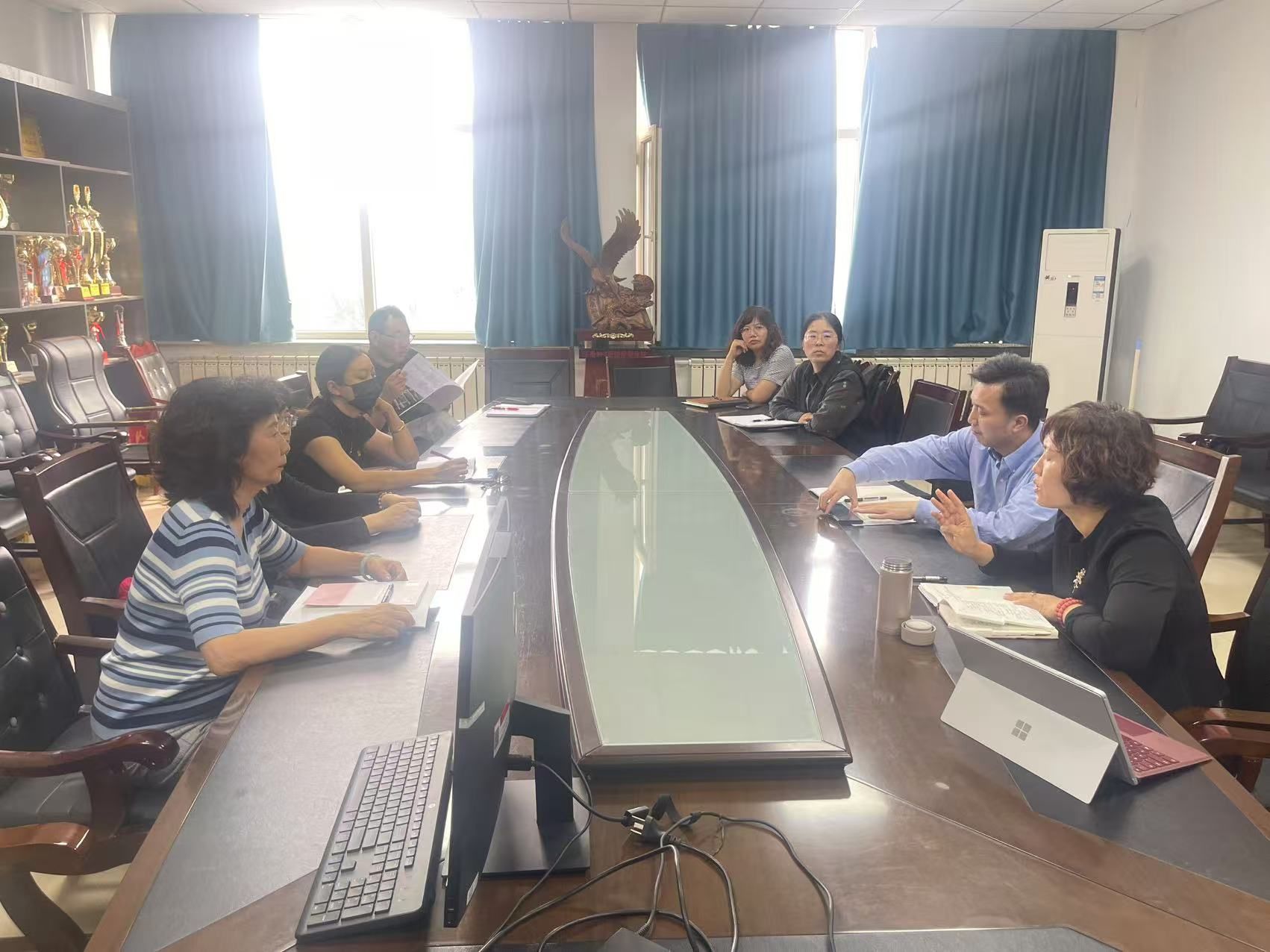 20259月25日下午,黄河“几字弯”发展研究基地在今年会jinnian官网307会议室召开了月度小型学术讨论会,研究骨干参加了会议。 基地首席专家魏曙光教授传达了“内蒙古自治区哲学社会科学重点研究基地建设工作现场会”的主要内容以及自治区党委宣传部王虎副部长过去一年基地建设工作的总结及下一阶段工作的要求。
